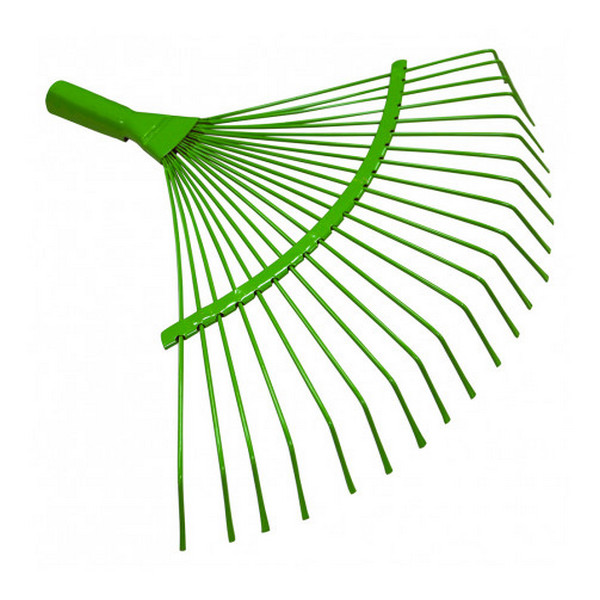 Грабли представляют собой развёрнутую метёлку в форме веера из 14 длинных зубьев, на конце согнутых к основанию, которые изготовлены из пружинного металла и окрашены. Они густо расположены и имеют большую длину. Веерные грабли предназначены для сбора листьев, скошенной травы, например, после работы газонокосилки, садового мусора. Веерные грабли обеспечивают более быструю и аккуратную уборку листьев с поверхности газонов, не нанося вред почве. Сегодня веерные грабли с широким захватом очень популярны, они обеспечивают экономию сил и времени на уборку, и являются абсолютно незаменим приспособлением.