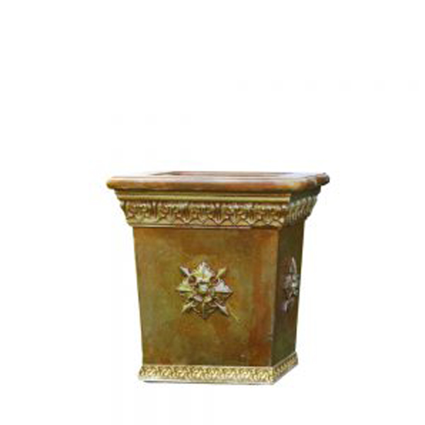 Такой вазон уже сам по себе выглядит готовым произведением искусства. Его квадратная форма универсальна для использования практически в любом уголке небольшого сада или дворика. Вазон также удачно впишется в композицию офисного здания или тематического кафе. Роскошный декор вазона позволяет использовать широкое разнообразие растений.