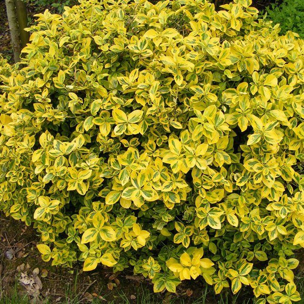 Бересклет Форчуна "Эмеральд Голд" - чрезвычайно распространенный сорт. Это компактный медленно разрастающийся кустик в высоту до 30 см. Листья небольшие – 2 см, остролистные. Высоко ценится за окраску: сами листья яркие изумрудные, а их окантовка золотистая, желтая. Осенью растение меняет окраску, становится красновато-бурым.
