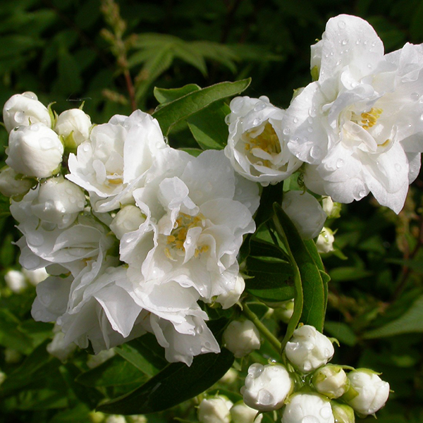 Временную засуху чубушники обычно переносят хорошо. Но при длительной знойной засухе листья садового жасмина теряют тургор, который легко восстанавливается его после дождя или полива.