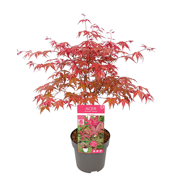 Клен Beni-maiko один из самых необыкновенных сортов медленно растущего японского декоративного клёна. Листопадное деревцо или кустарник с ежегодным приростом не больше 15 см, можно выращивать в катках, красиво возле водоёмов. К 10-ти годам высота 120-180 см. Лист резной, тонкий, ярко красной окраски с желтыми оттенками, летом окраска меняется преобладают зелёные с розовыми тона, и оранжевый и красный осенью.