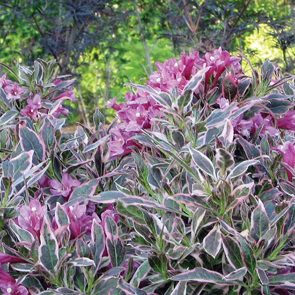 Weigela All Summer Monet - восхитительный карликовый сорт, который имеет красивую пеструю листву и цветет все лето. Предпочитает защищенные от холодных ветров места с питательной, рыхлой увлажненной почвой, но без застоя влаги. На зиму желательно легкое укрытие.