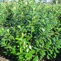 Лавровишня Ротундифолиа (Prunus Rotundifolia) - вечнозелёный сильный, растущий вертикально кустарник. Крона закрытая, с возрастом более широкая и рыхлая. Высота 2-3 м, ширина 2,5 м.