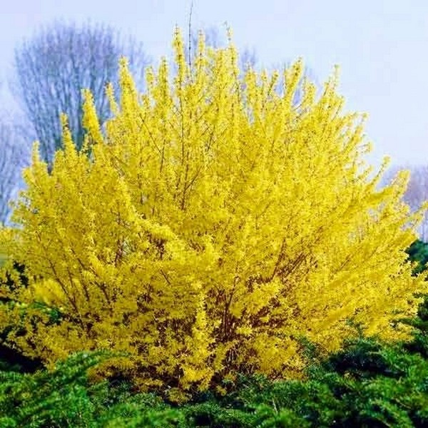 Форзиция – раннецветущий красивоцветущий листопадный кустарник высотой 0,7- 1м. Форма кроны плотная, округлая не требует формировки. Куст форзиции расцветает еще до распускания листьев, ее ветки густо осыпаны золотистыми цветками, схожими на колокольчики. Время цветения - март-апрель. Окраска цветков - светло-желтая. Диаметр цветков 2-3 см. Невероятно обильное цветение. Листья простые, продолговатые или овально-ланцетные, до 10см длиной, грубо зубчатые по краю. Форзиция хорошо растет на солнечном месте и в полутени, но лучше высадите ее в теплое, защищенное от ветра место. Растет на любых плодородных почвах. Кустарник форзиции в морозные зимы может подмерзать. Чтобы этого не случилось, осенью побеги пригните к земле и укройте их лапником или другим укрывным материалом. Подходит для штамбовой культуры.