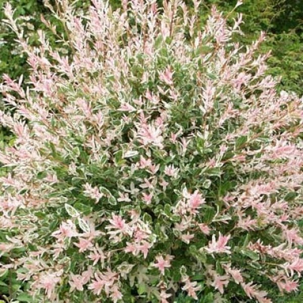 Ива цельнолистая Хакуро-Нишики – яркое, декоративное дерево шаровидной формы. Вырастает максимально до 2м. Листья мягкие зеленые с кремово-розовыми крапинками, становятся оранжевым осенью перед ноябрем. После ноября открываются кораллово-красные побеги, которые сделают интересным и оригинальным сад зимой. В конце зимы появляются нежные розовые «котики», свидетельствующие о том, что весна уже близка. Выделяется декоративной формой кроны, листьями, побегами и, прежде всего, формой весенних приростов, которые бывают серебристые, желтые, розовые и появляются непосредственно перед появлением листьев.