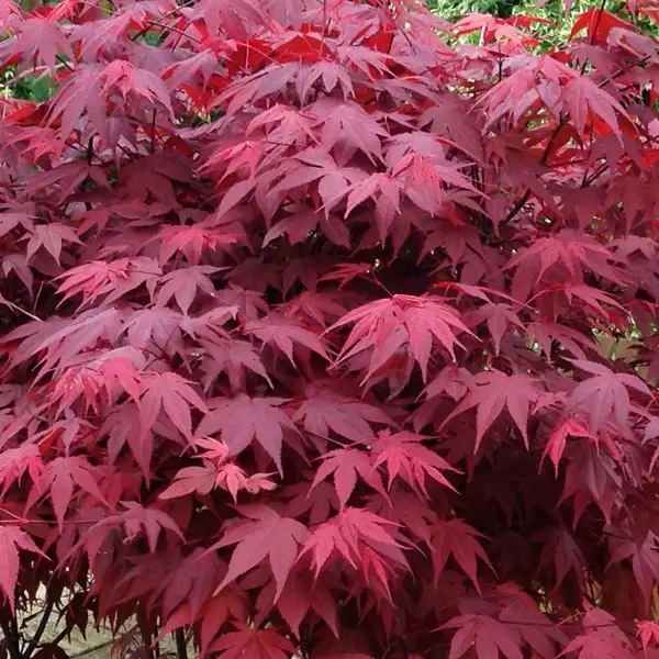 Клен пальмолистый Dissectum – это декоративное дерево или небольшой кустарник с изящной плакучей формой. Он произрастает до 1,5-2 м высотой и шириной до 2,5 м, с мягкими, повисшими ветвями, образующими изящную каскадную крону. Листья растения разделены на узкие сегменты, напоминающие пальмовые листья, и имеют насыщенный зеленоватый цвет весной и летом. Осень приносит дополнительную красоту — листья приобретают оранжевые оттенки. Кора дерева светло-серая, гладкая, с легким блеском. Клен не цветет обильно, но имеет небольшие цветки, которые появляются в апреле-мае. Как сажать и ухаживать Acer palmatum Dissectum: этот сорт клена нуждается в хорошо дренированных, кислых, плодородных почвах, поэтому следует избегать тяжелых или заболоченных почв. Для лучшего роста клен Dissectum нуждается в солнечных или слегка затененных местах, где его декоративные листья будут сохранять свой цвет и форму. Растение не любит прямого палящего солнца, которое может вызвать обжигание листьев, поэтому легкая тень в особо жаркие периоды дня будет ему на пользу. Клен обладает средней морозостойкостью (до -20°C), поэтому в холодных зонах требует укрытия на зиму, особенно молодые деревья. Полив должен быть регулярным, но умеренным, без застоя воды, чтобы не вызвать гниение корней. Обрезка не обязательна, но может быть использована для коррекции формы.