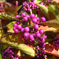 Красивоплодник бодиньера Профьюжен - это декоративный кустарник, который широко используется для озеленения. Кустарник имеет пряморастущие ветви, покрытые зелеными, продолговато-заостренными листьями длиной 5-12 см. Когда осень наступает, листья становятся желто-оранжевыми. Размер кустарника достигает высоты до 3 м и ширины до 2,4 м. В июне красивоплодник цветет мелкими лиловыми или светло-сиреневыми цветочками, собранными в изящные соцветия.