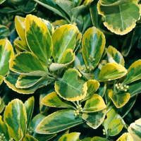 Euonymus japonicus Ovatus Aureus - это вечнозеленый кустарник с яркой, пестрой желто-зеленой листвой, ценящийся за декоративный вид круглый год. Его овальные листья имеют насыщенный зеленый цвет с яркими золотыми краями. Растет компактно, достигая высоты 1-1,5 метра и подходит как для высадки в открытый грунт, так и для контейнерного озеленения.
