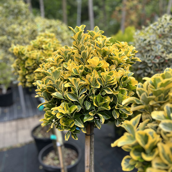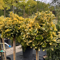 Euonymus japonicus Elegantissimus Aureus - вечнозеленый куст с темно-зелеными листьями, которые имеют яркие золотисто-желтые края. Он декоративный круглогодично и хорошо растет на солнечных или полутенистых участках с хорошо дренированной почвой.