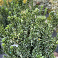 Euonymus japonicus Benkomasaki Erecta - вечнозеленый кустарник японского происхождения с колонновидной, плотной формой кроны, достигающий в высоту до 2,2 метров. Он отличается темно-зелеными блестящими листьями и подходит для создания живых изгородей, бордюров, стриженых форм и контейнерного выращивания на солнечных местах или в полутени при условии хорошо дренированной почвы. Плотно прилегающая к стеблям листва, которая растет по всей длине ветвей, придает этому растению оригинальный вид.