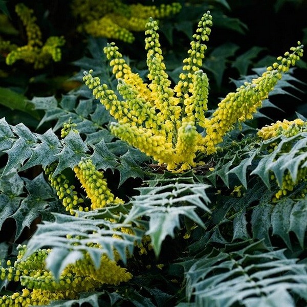 Синонимы: Магония средняя, магония гибридная, декоративная магония.