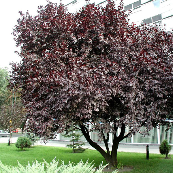 Слива растопыренная Писсарди - великолепное дерево для ландшафтного дизайна. Имеет оригинальную форму кроны, благодаря которой и получила своё необычное название. Листва имеет необычный пурпурный цвет, который подчеркивается кокетливыми белыми цветами. Это крайне ценное дерево на участке, которое порадует роскошным внешним видом.