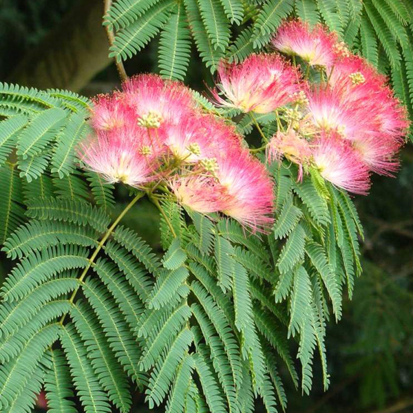Акация шёлковая или (Albizia julibrissin) - лиственное цветущее растение из семейства Бобовых. Обычное с виду деревце, в период цветения превращается в настоящую сказку. Пышные махровые соцветия вызывают настоящий восторг, за что этот вид получил в народе название "шелковый цветок".