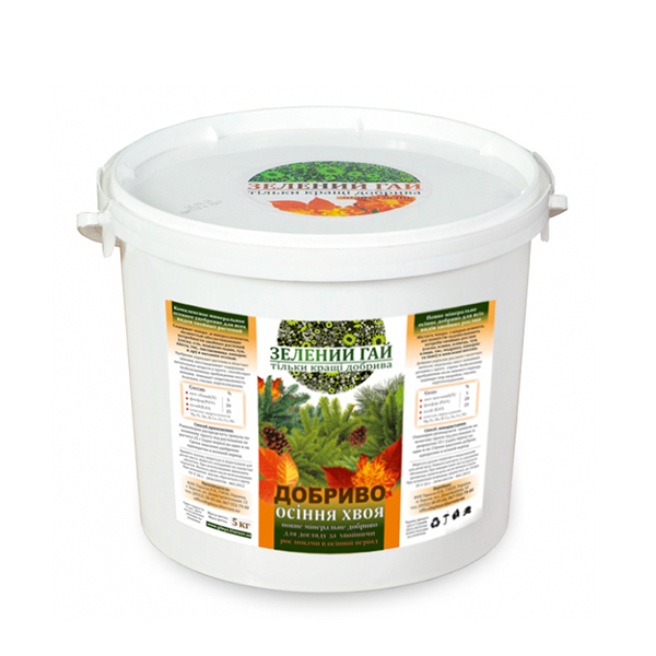 Зеленый Гай Осенняя хвоя (5 кг) – полное минеральное осеннее удобрение для всех видов хвойных растений (сосна, ель, можжевельник, туя, пихта, тис, лиственница, кипарис и другие) в питании осенью.