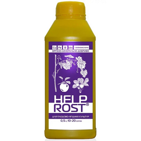 Хелпрост для плодово-ягодных культур – органически-минеральное удобрение для выращивания плодово-ягодных культур (яблоня, груша, виноград, слива, персик, вишня, черешня, смородина, малина, клубника и др.). Благодаря сбалансированной формуле повышает иммунитет растений, стимулирует и улучшает рост, повышает устойчивость растений к стрессам, предохраняет от хлороза.