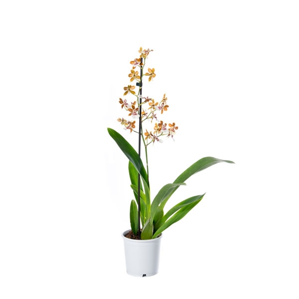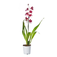 Камбрия - элегантное растение с красными и желтыми цветками, окаймленными белыми и розовыми полями. Длинный, растущий вертикально цветонос, как правило, содержит от 5 до 20 цветков, цветущих от 4 до 8 недель. Взрослое растение может иметь большее количество цветков.