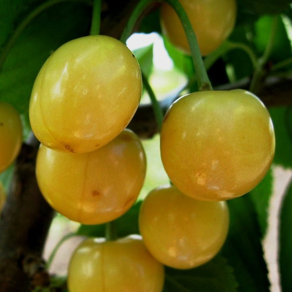 Плоды массой 6-8 г, округло-сердцевидные. Кожица блестящая, тонкая, плотная, светло-жёлтая. Мякоть плотная, кремовая, с бесцветным соком, сладкая, приятного вкуса (4,2 бал.). Косточка маленькая.