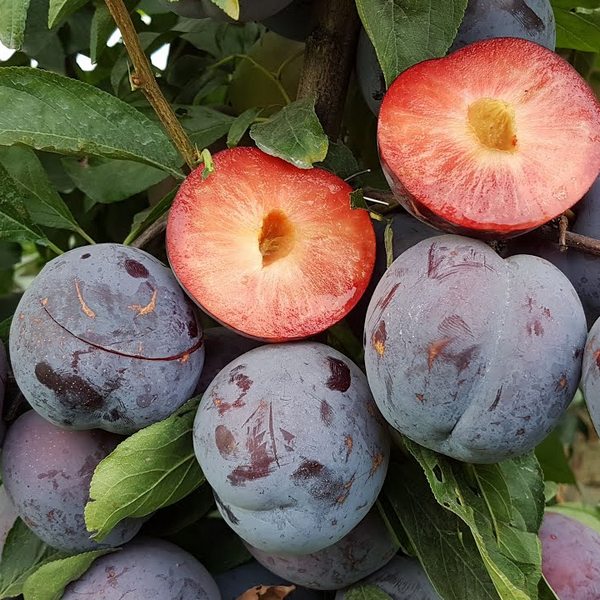 Сливы созревают в середине июля - начало августа и могут долго висеть не опадая. Сорт считается самым крупноплодным среди диплоидных слив. Плоды и правда просто гигантские. В диаметре достигают 5–9 см, а в весе — 250 г.