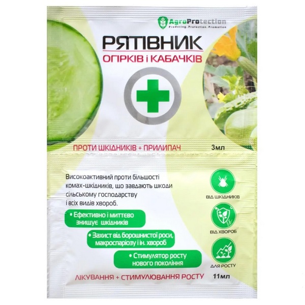Спасатель Огурцов 3 мл + 11 мл — хит продаж. Это препарат нового поколения, который благодаря 4-компонетному составу не оставляет ни одного шанса вредителям и патогенам. Средство уничтожает яйца, личинки и взрослые особи. Эффективно против основных болезней огурцов и кабачков. Ваши грядки остаются здоровыми более 3 недель. Но это еще не всё! Фосфорно-калийное удобрение действует, как стимулятор роста для растений.