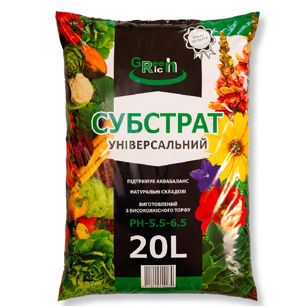 Высококачественный Универсальный субстрат с полноценным комплексом веществ минерального и органического происхождения, имеет нейтральный кислотно-щелочной показатель, отлично сбалансированный, содержит большой набор питательных веществ, которые легко усваиваются растениями.