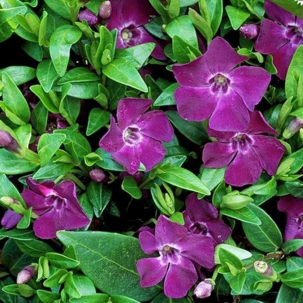 Vinca minor 'Atropurpurea', Барвинок малый 'Атропурпуреа' Как выглядит и растет Барвинок 'Atropurpurea' Популярный почвопокровный многолетник, барвинок 'Atropurpurea' растет плотным ковром из глянцевых темно-зеленых листьев. Ползучие побеги в узлах цепляются к земле, образуя плотный покров. В мае цветет винно-фиолетовыми цветами. Хорошо растет в тени, а на солнце, напротив, листья могут выгорать. Побеги легко укореняются, поэтому новые растения можно легко размножить-перенести на другое место весной или ранней осенью. Как сажать Барвинок 'Atropurpurea' и ухаживать Высаживать Барвинок 'Atropurpurea' надо в тень, в умеренно увлажненные суглинистые почвы. После укоренения он перенесет и легкую засуху. Морозостойкость до -29, но в бесснежные зимы может потребоваться дополнительная защита. Где сажать Барвинок 'Atropurpurea' Барвинок 'Atropurpurea' отлично подойдет для посадки в тени от деревьев или больших кустов, на передних планах миксбордеров, на каменистых горках и небольших склонах. В качестве ампельного растения может быть взорван контейнеры или кашпо.