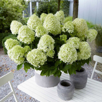 Гортензия метельчатая Литл Спуки - карликовая гортензия высотой 50 см и шириной 30 см. Цветки зеленовато-белые, в куполообразных соцветиях. Цветение обильное, в июле-августе. Куст компактный, идеально подходит для выращивания в контейнере на террасе и балконе. Место солнечное или полутенистое. Почва влажная, дренированная. Морозостойкость до -25?С.