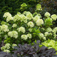 Компактный куст, обильно и продолжительно цветущий. Высота куста до 1 м. Листья матово-зелёные, крупные, зубчатые. Соцветия полушаровидные, плотные. Цветки белые, по мере отцветания розовые, затем зеленоватые. Зимостойкость высокая.