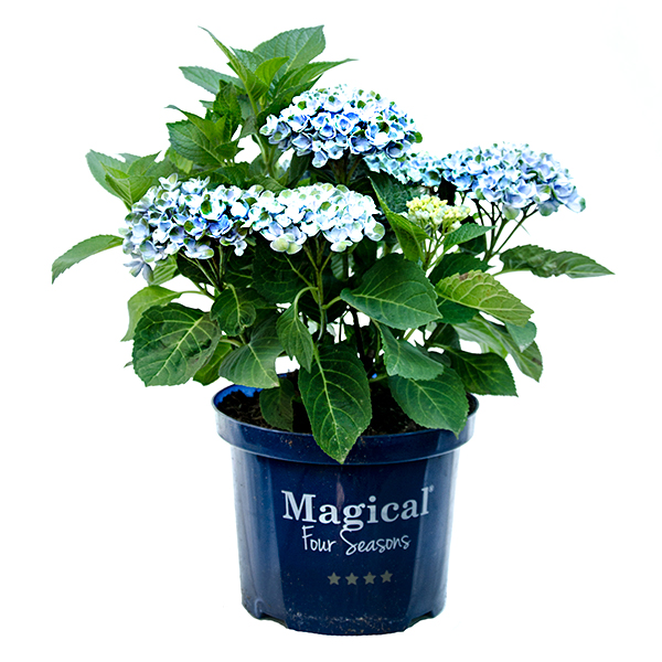 Саженцы гортензии Magical Four Seasons прекрасно цветут в контейнерах, на патио и в садах. Соцветия гортензий Magical Four Seasons устойчивы к солнцу, дождю и ветру, благодаря очень прочным цветоносам и лепесткам. В вазе соцветия гортензии сортогруппы Magical Four Seasons хранят свою свежесть на много дольше чем другие сорта гортензий. Помимо характерной особенности всех гортензий Magical - смена цвета лепестков на протяжении всего цветения. Гортензия Magical может порадовать резными краями, оригинальной "жатой" фактурой лепестков, и аметистовой бусинкой в центре. Цветки нежно-розовые, постепенно меняют свой окрас на сиренево-розовый с салатовыми мазками, а в конце цветения полностью зеленые. Куст компактный, высотой до 1,2 м, шириной до 1 м. Садовая гортензия Magical цветет на ветках первого года, это означает, что даже если вся надземная часть гортензии этих уникальных сортов вымерзнет, то на поднявшихся по весне новых побегах в июле - августе уже будут цвести удивительные по красоте соцветия.