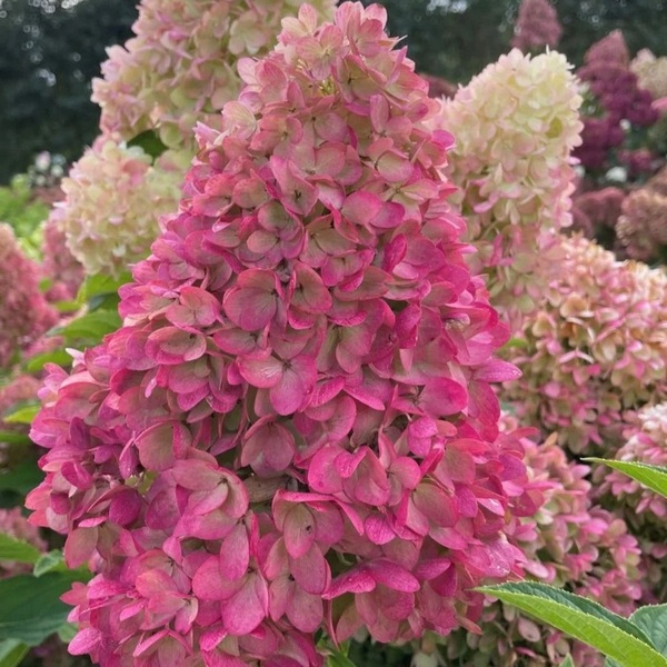 Стерильные цветки многочисленные, меняю окраску в течение всего сезона, начиная с лаймового через кремовый, до лаймово красного. Соцветия плотные, размером 15-20 см. Цветки крупные, диаметром около 3см. Цветки меняют цвет в течение сезона