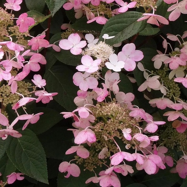 Первая в мире вьющаяся гортензия с розововыми цветками, необычная окраска для вьющихся гортензий.