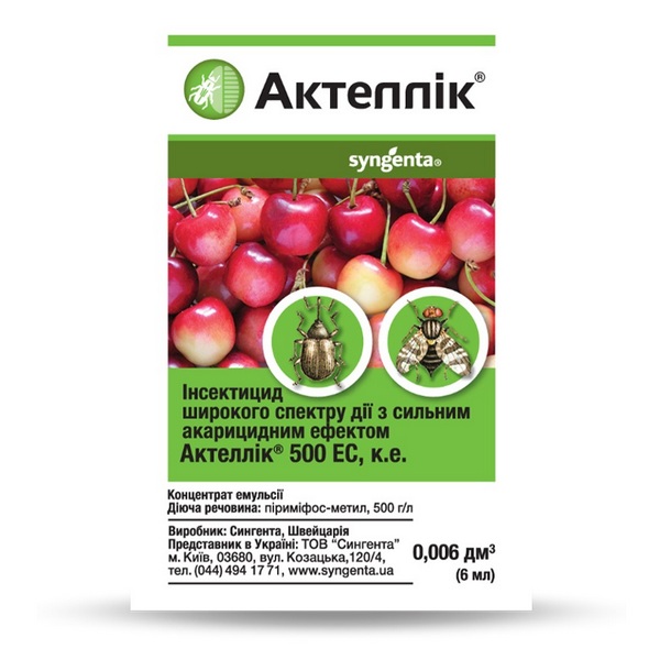 Актеллик - несистемный фосфорорганический инсектицид, который владеет контактным, кишечным ифумигантным действием. Препарат применяется для уничтожения листогрызущих, сосущих вредителей включая клещей.