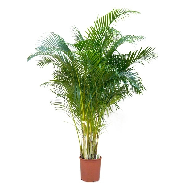 Крупный комнатный цветок. Эта пальма отличается особой кустистостью – ваи обильно ветвятся у основания и растение смотрится очень эффектно. Вазон с пальмой арека стильно вписывается в интерьер больших по площади хорошо освещенных помещений. Молодая небольших размеров арека эффектно разместится в комнате в квартире или доме. С течением времени нужно будет предоставить цветку больше места. Комнатное растение арека стремительно разрастается, поэтому ей подойдут площади, имеющие свободное пространство как вверху, так и не ограничивающие ее увеличение в ширину.