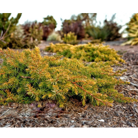 Можжевельник прибрежный Олл Голд (Juniperus conferta All Gold) - медленнорастущий стелющийся хвойный кустарник, высотой не более 20 см. В возрасте 10 лет диаметр кроны 80-90 см. Годовой прирост до 10 см в год. Образует плоский ковер.