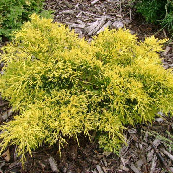 Хвоя чешуйчатая, ярко-зеленая, у молодых растений - с золотистым оттенком. Декоративные особенности кустарнику придают золотисто-лимонные или кремовые молодые побеги, которые весной контрастно смотрятся на фоне более старой хвои.