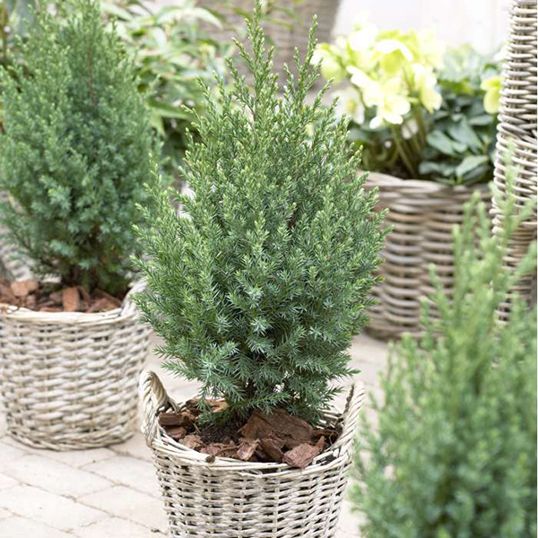 Хвоя колючая сине-зеленая в зимнее время приобретает стальной оттенок. Плоды - фиолетово-коричневые шишкоягоды.