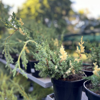 Juniperus chinensis Kaizuka Variegata - раскидистый, вечнозеленый хвойный кустарник. Хвоя чешуйчатая, реже игольчатая иногда одновременно на одной ветке чешуйчато-игольчатая. Цвет светло-зеленый с кремово-белыми вкраплениями. Морозостойкий. Хорошо переносит стрижку, поэтому можно держать на определенной высоте и придавать нужную форму.