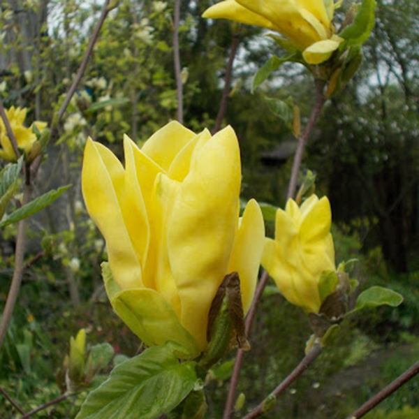 Эта магнолия с поздним сроком цветения, поэтому ей не страшны поздние весенние заморозки. Считается, что основным достоинством этого сорта является небольшой рост - он растёт как крупный куст, за 10 лет достигает 2,5 метра , поэтому идеально подходит для небольших садов. Цветки большие яркой жёлтой окраски до 10 см диаметром, появляются практически одновременно с листвой в апреле-мае. Очень многочисленные и яркие из всех известных желтых. Листья зеленые, широкие, правильной формы, среднего размера.Сорт полностью зимостоек в садах средней широты.
