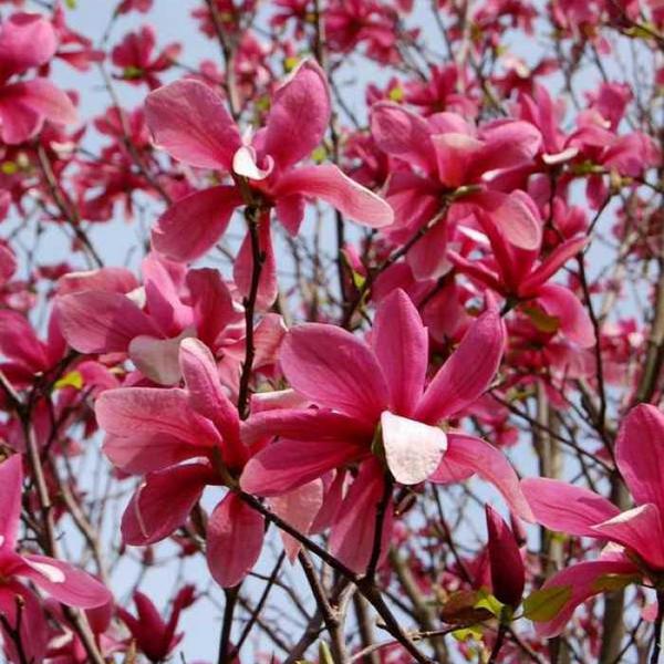 Магнолия суланжа (Magnolia soulangeana 'Galaxy') – цветущее ранней весной дерево, которое подарит незабываемые ощущения и красоты, при одном взгляде. Для выведения этого сорта был скрещен Magnolia liliiflora Nigra x Magnolia Sprengeri Diva, этим занимался Уильям Козар в США, когда же он добился желаемого магнолия суланжа поступила в продажу в 1980 году. Быстрорастущее дерево, произрастающее 5-6 м высоты, славится своими прекрасными цветами, они крупные по размеру и напоминают цветок лилии, длиной 20 см, пурпурно-розового цвета, а в середине светло-розовые с приятным ароматом. Цветение длится апрель-май. После этого появляются листья ярко-зеленого цвета, крупные, осенью становятся желтыми. Магнолия любит солнечные места и хорошо защищенные места. Предпочитает рыхлые, хорошо дренированные, влажные, плодородные, супесчаные с кислой реакцией почвы. Морозостойка, но при морозах нужно укрывать. Прекрасно можно посадить магнолию суланжи 'Галакси' в масляной посадке, как солитер, который будет выступать в ландшафтной композиции главным элементом, но только главное сажать дерево рядом с теми растениями, которые схожи по характеристикам, чтобы не было дисбаланса.