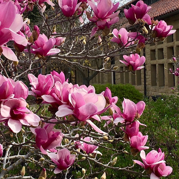 Магнолия суланжа (Magnolia soulangeana) - гибрид, полученный путем опыления магнолии обнаженной и лилиецветной. Это 6-8-метровое дерево с рыхлой кроной, обычно начинающее ветвиться близко от земли. Листья обратнояйцевидные или овальные, заостренные на вершине и у основания, длиной 13-22 см, матово-зеленые, сверху гладкие, снизу опушенные.