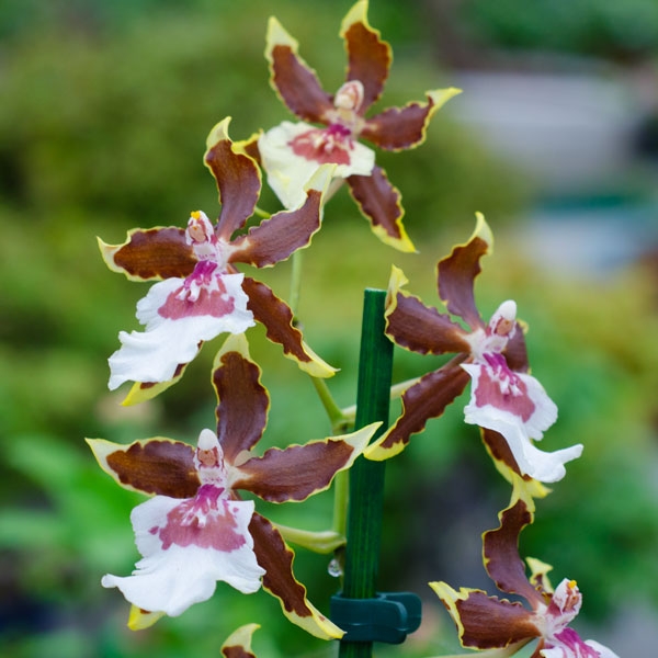 Камбрия - элегантное растение с красными и желтыми цветками, окаймленными белыми и розовыми полями. Длинный, растущий вертикально цветонос, как правило, содержит от 5 до 20 цветков, цветущих от 4 до 8 недель. Взрослое растение может иметь большее количество цветков.