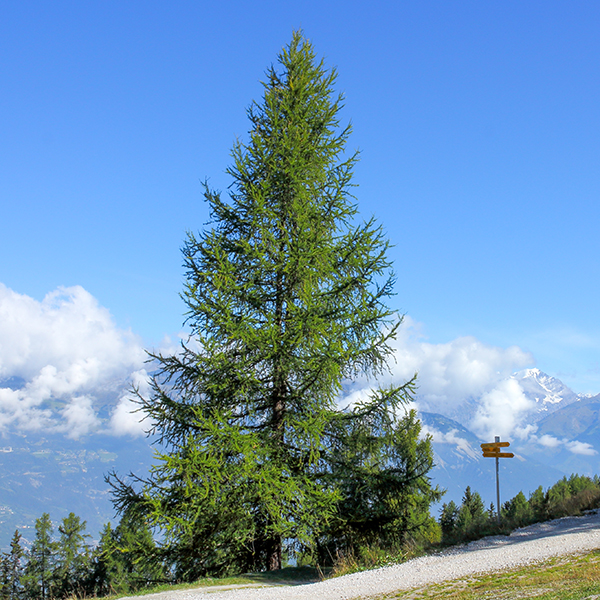 Larix decidua - дерево до 30 метров высотой, со стройным стволом и конусовидной, островершинной, ветвистой кроной. Основные ветви кроны отходят от ствола почти горизонтально, слегка изгибаясь вниз, но на конце слегка приподняты вверх. Почки концевые, смолистые.