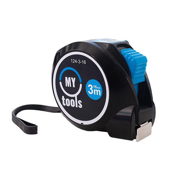 Разметка выполнена большими чёрными цифрами на светлом фоне. Крепление крючка выковано с помощью дополнительной пластины, принимающей на себя ударную нагрузку при сматывании. Корпус выполнен из ABS-пластика – прочного, экологически чистого материала. Автоматический замок не требует нажатия на фиксацию ленты. Прорезиненный корпус препятствует ускользанию из рук, а также смягчает удары при падении.