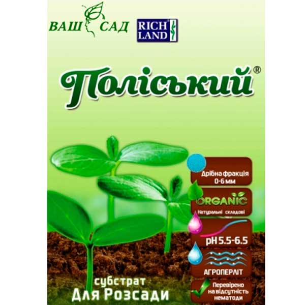 Cубстрат "Полесский" - готовая для использования и выращивания специальная смесь на основе высококачественных верховых, низинных и переходных торфов, мелкая фракция которых увеличивает площадь контакта семян и корней с субстратом, что обеспечивает лучшее прористание и укоренения рассады.