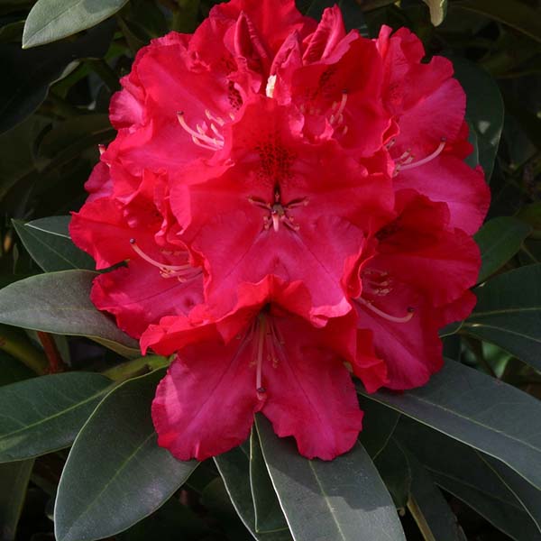 Рододендрон Вилгенс Руби красивый плотный округлый куст. Цветение ярко-красное. Кромка цветов темнее и сильно гофрированна. Имеет большие, свеже-зеленые листья и обладает хорошей морозоустойчивостью. Предпочитает рыхлые, кислые, хорошо дренированные, богатые гумусом почвы. Рекомендуется мульчирование. Одинаково чувствительна как к затоплению, так и к засухе. Морозоустойкость до -27 С
