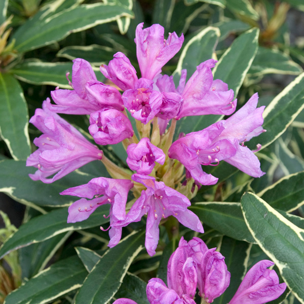 - это великолепный декоративный кустарник с интересным окрасом листьев - они зеленые с кремово-белой окантовкой. Цветы лилово-розовые. Высота и ширина взрослого растения - 1,5 - 2 м.