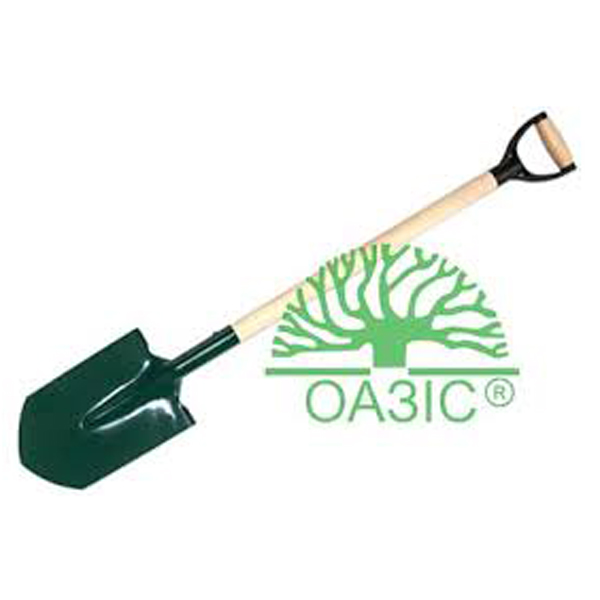 Металлическая лопата для перекопки земли с деревянным черенком. Длина черенка с рукояткой 85 см, лопата 28 см.