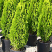 Туя восточная "Pyramidalis Aurea" - вечнозеленый узко-колонновидный кустарник. Высота взрослого растения: 2,5-4 м, ширина кроны 0,8-1,5 м. Медленнорастущий, годовой прирост в высоту 10 см, в ширину 5 см.