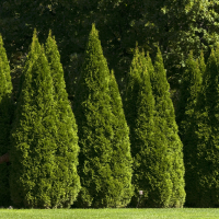Туя западная Смарагд - один из наилучших сортов туи с умеренным компактным ростом. Вечнозелёное хвойное дерево с очень узкой правильной конусовидной кроной и вертикальными, очень густорасположенными ветвями. Медленнорастущее. Годовой прирост в высоту 10 см-20см, в ширину 4-6 см. В возрасте 10 лет достигает высоты 2,5 м, диметр кроны до 1,5 м