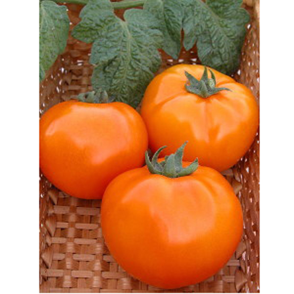 Растение детерминантное, среднеспелое, относительно невысокое 70-80 см, но в условиях теплицы может вырасти свыше одного метра, в таком случае рекомендуется подвязывать кусты. Крупноплодный сорт, плоды 250-350 г, иногда достигают до 500 г. По форме плоды плоско-огруглые, при полном созревании ярко-оранжевые с золотистым оттенком. Обладает отличными вкусовыми качествами. Сорт относится к салатным, но это не ограничивает его применения, из них получается отличный томатный сок, различные соусы, и благодаря плотной шкурке, хорошо консервируются.