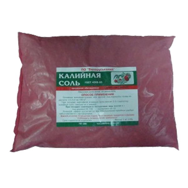 Назначение: Калийная соль помогает увеличить урожайность плодовых практически два раза. Её также применяют для укрепления вегетативных побегов различных овощных культур (томатов, баклажанов). Калий практически не вымывается из почвы атмосферными водами, поэтому в основном, его применяют для индивидуальной подкормки или удобрения полей перед посадкой свеклы, кукурузы, капусты.
